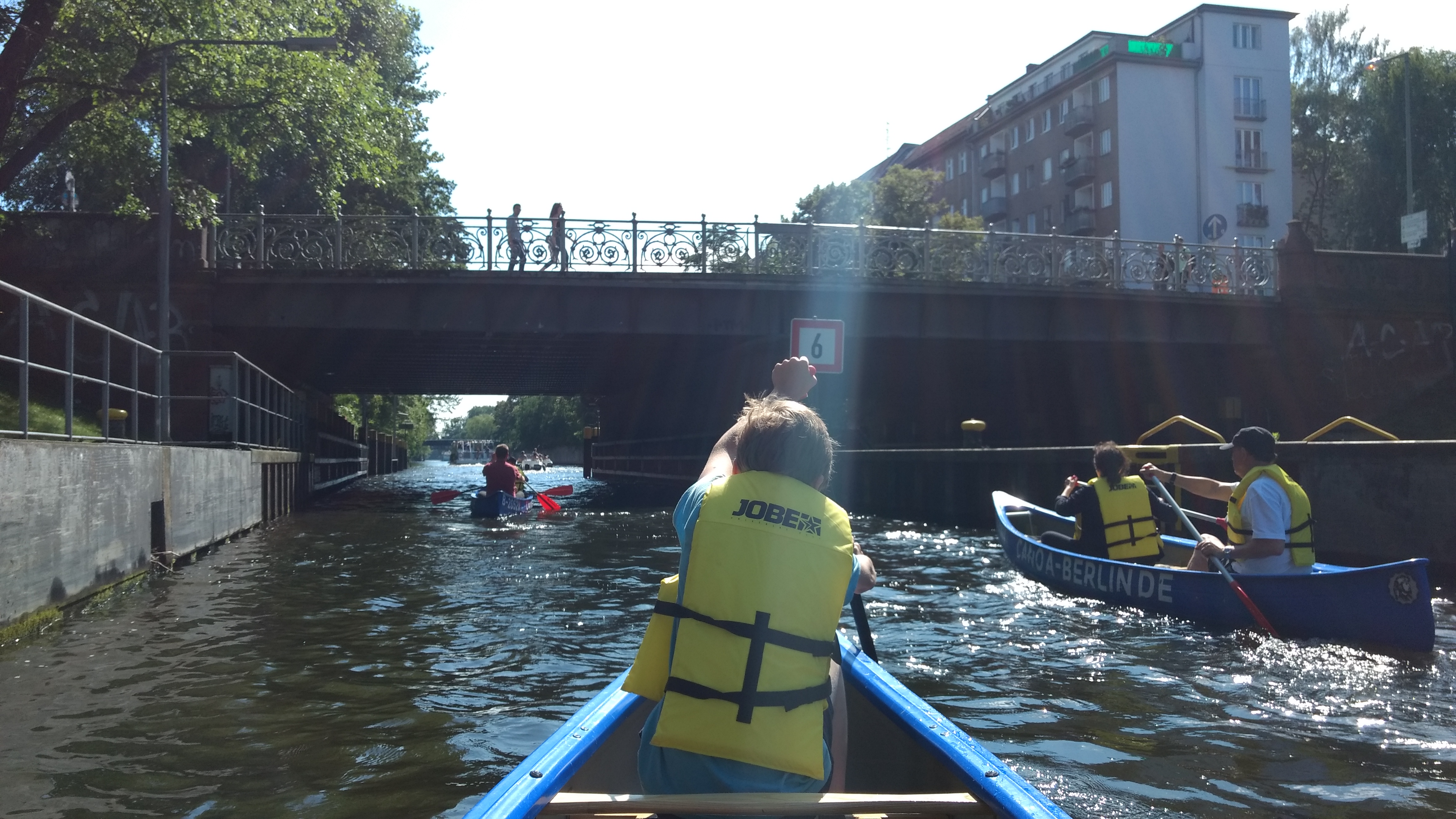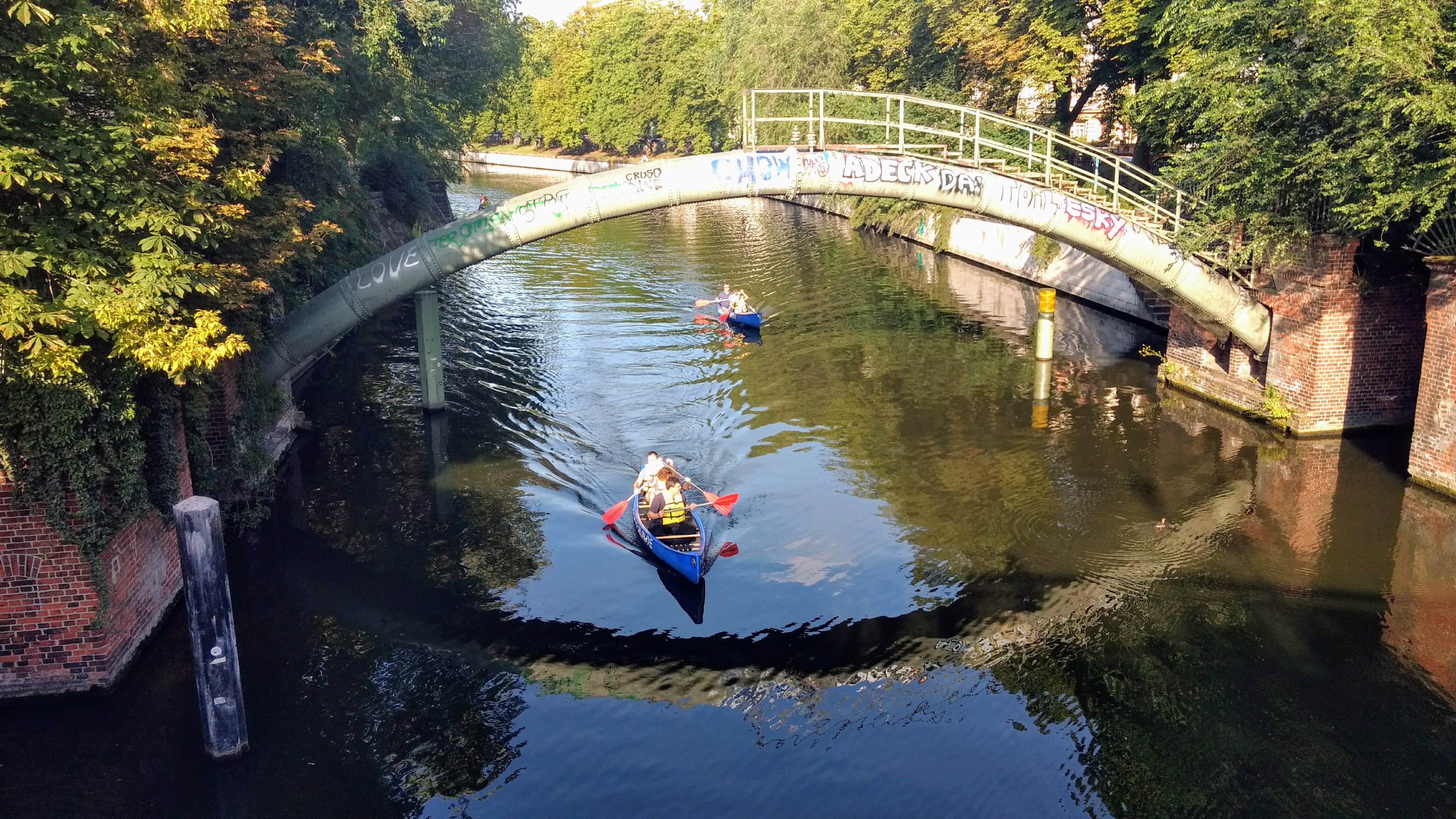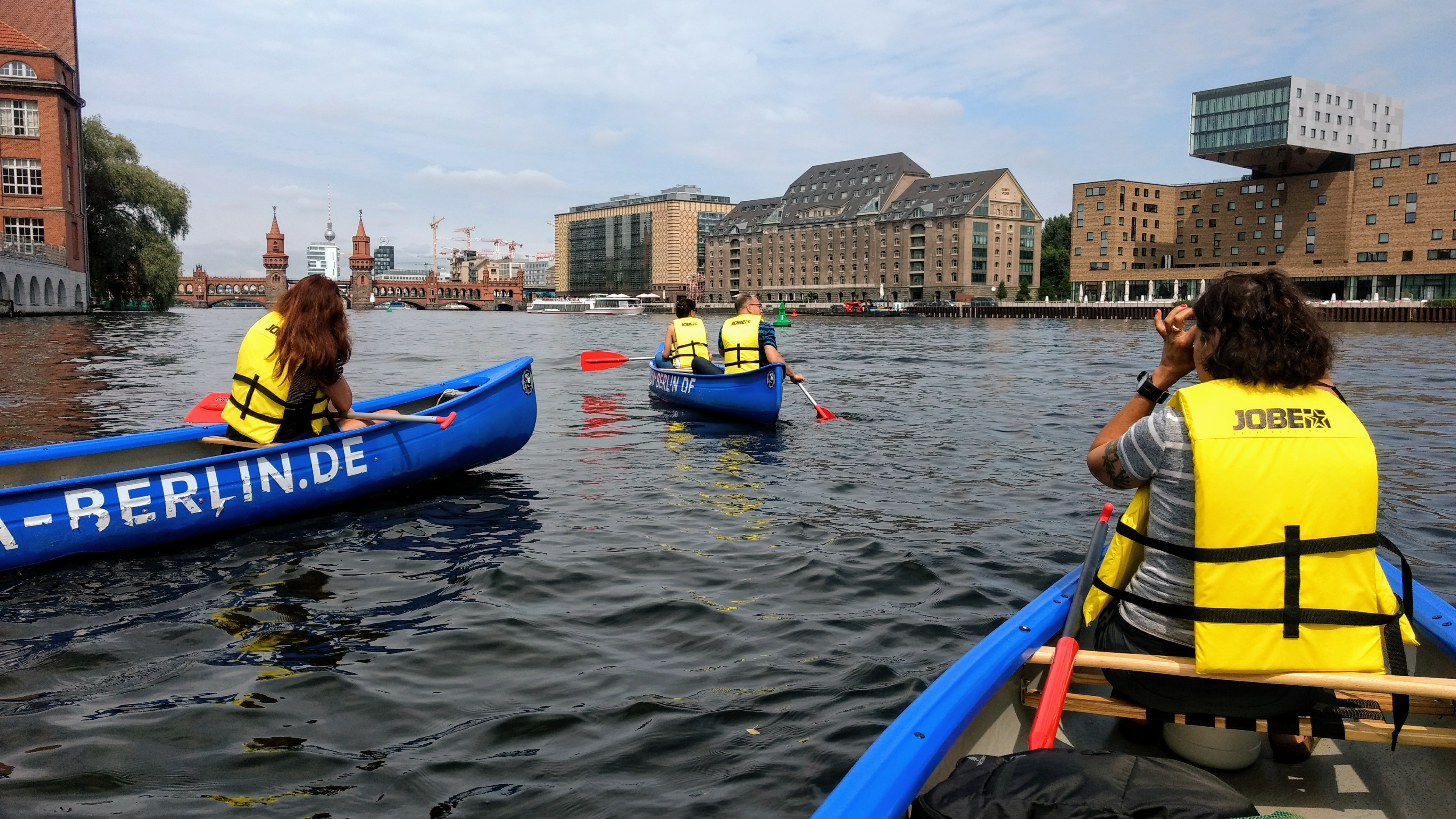 ...join us for an unforgettable canoe tour through the heart of Kreuzberg – one of Berlin’s most vibrant and diverse districts. The route from Dreiländereck to the Oberschleuse is packed with highlights: paddling along the historic Landwehr Canal and into one of the most beautiful sections of the River Spree, you’ll experience the unique vibe of this open-minded, multicultural, and alternative neighborhood.