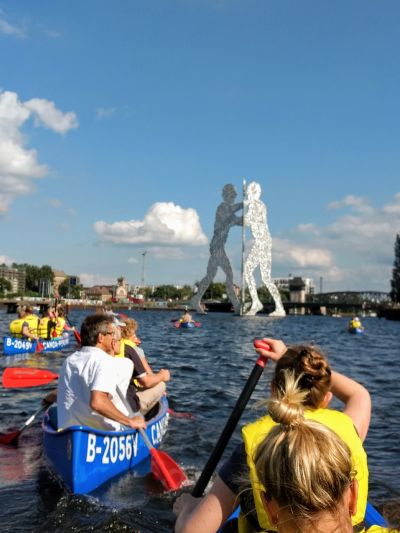 In den 4-er-Kanadiern von CANOA BERLIN ist Teamarbeit gefragt. Ein gemeinsamer Ausflug zu den Wasserwegen von Neukölln und Kreuzberg ist Fahrspaß pur und stärkt das Wir-Gefühl. Von unserer Beach Bar CANOA BEACH auf der Sonneninsel entlang des Görlitzer Ufers und der Lohmühleninsel an der Oberschleuse spürst du auf dieser Tour, wie sich das weltoffene, multikulturelle Berlin anfühlt. Neben viel Wissenswertem zur Berliner Geschichte halten unsere Guides witzige Anekdoten über die beiden wohl buntesten Stadtteile Berlins bereit.